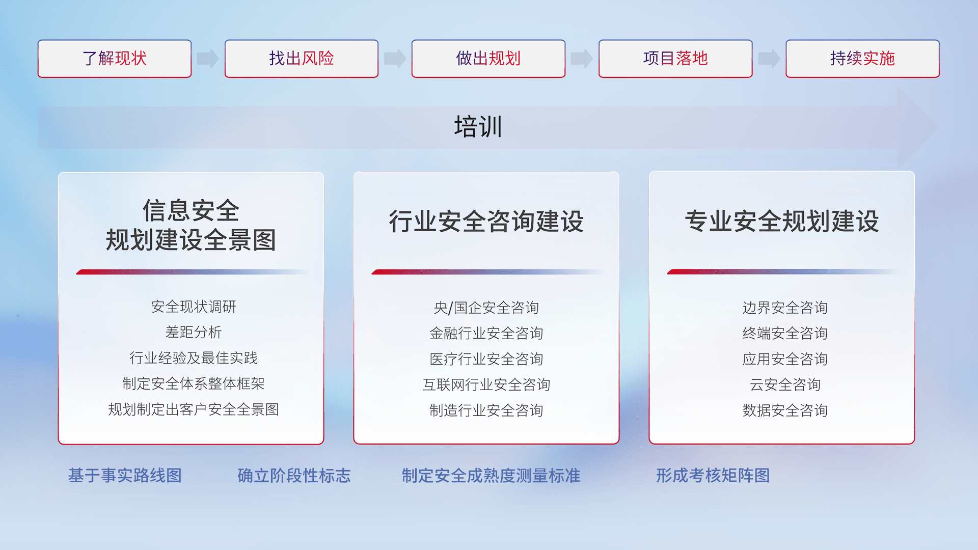 梳理客户信息安全现状调研、、、、差距分析结果,,,,结合行业先进经验及最佳实践,,,,制订客户的信息安全管控体系总结架构,,,,最终形成一个完整的客户信息安全规划与建设的全景图。。